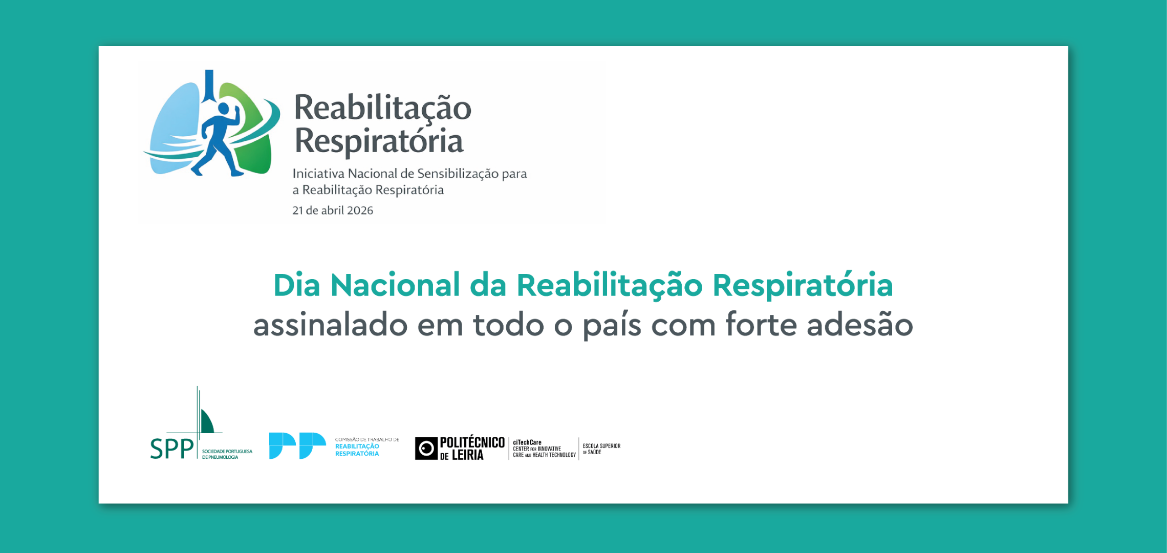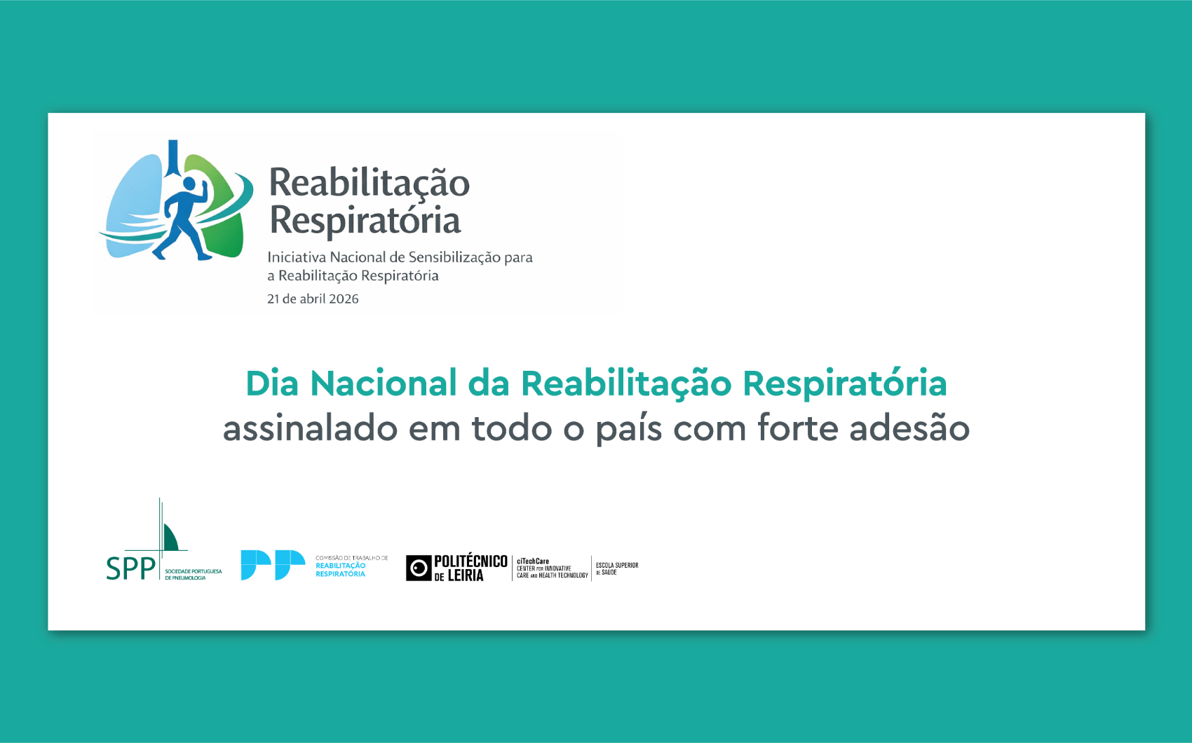 Para assinalar o Dia Nacional da Reabilitação Respiratória a CT de Reabilitação Respiratória da SPP, em conjunto com o Instituto Politécnico de Leiria (IPL), desafia todos os colegas dos diferentes níveis de cuidados a desenvolverem iniciativas locais, com o objetivo de criar uma rede de sensibilização para a importância da reabilitação respiratória.